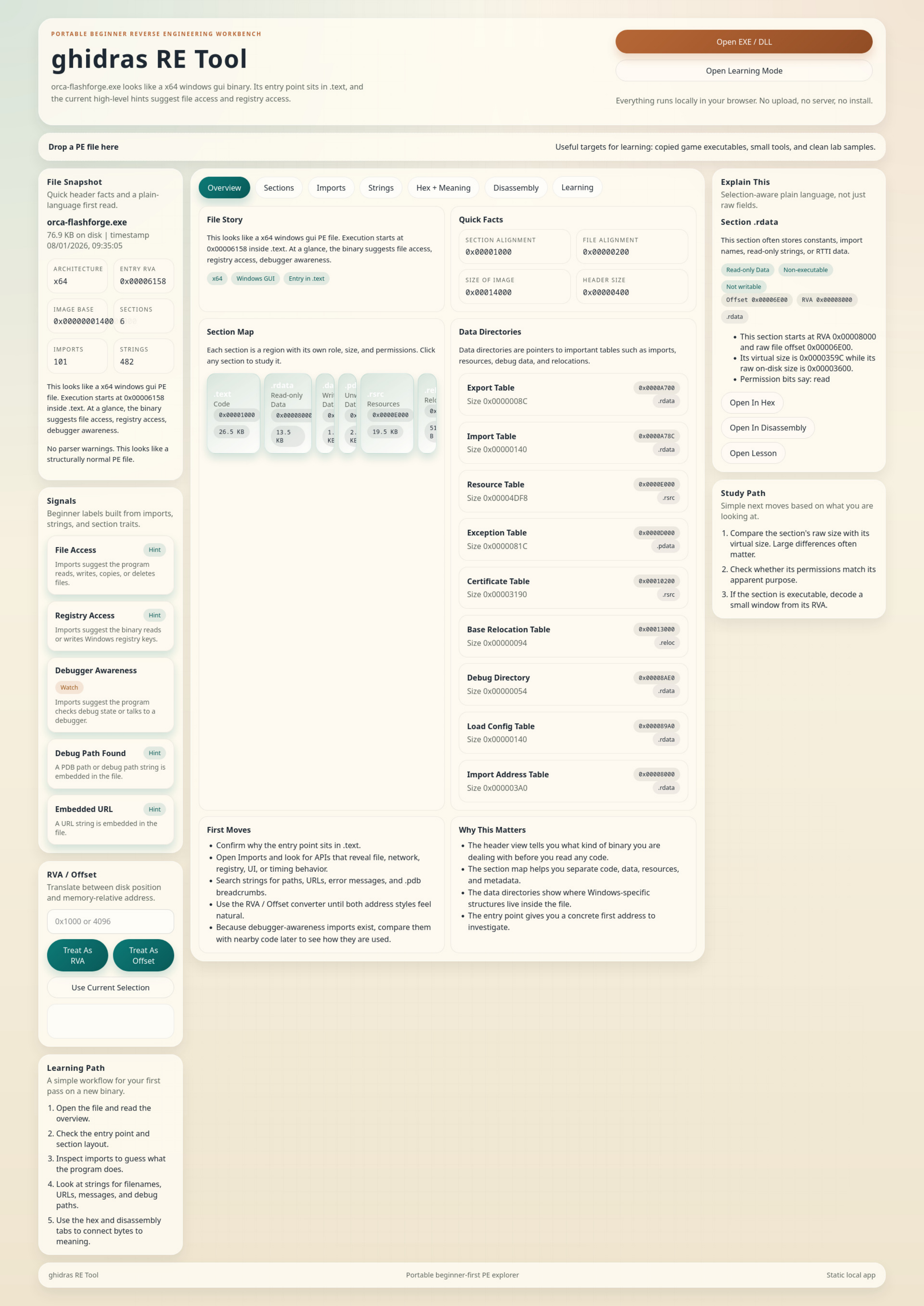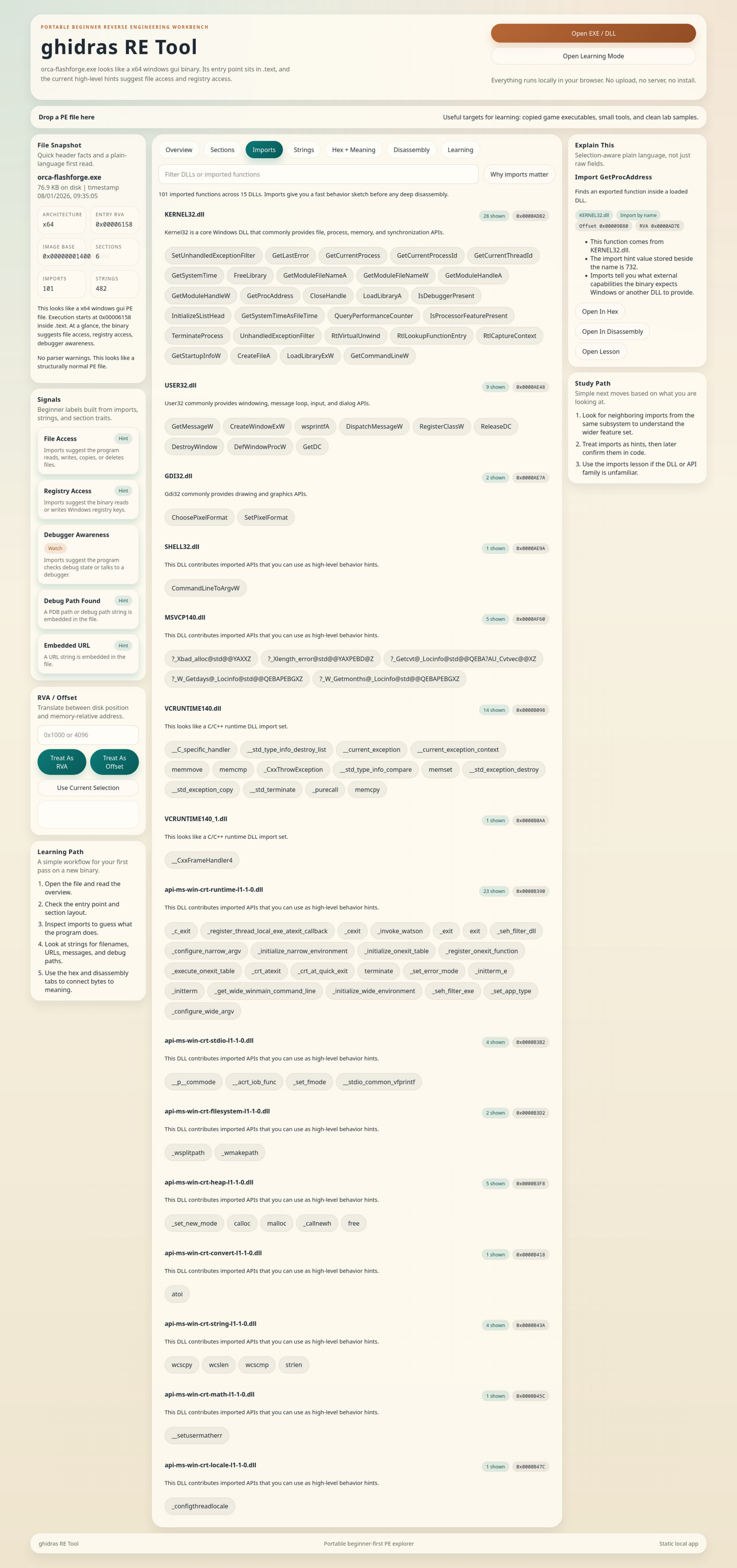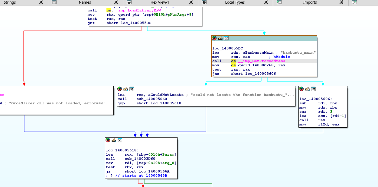 orca-flashforge.exe now looks like a bootstrapper that resolves a DLL and hands execution off through a named entrypoint. That shifts the main reverse-engineering target downstream from the launcher into the loaded slicer module.